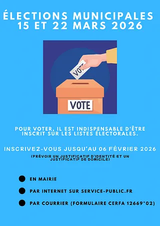 En mairie, jusqu'au vendredi 06 février 2026 ; pour remplir le formulaire et fournir les justificatifs (domicile, carte d'identité).