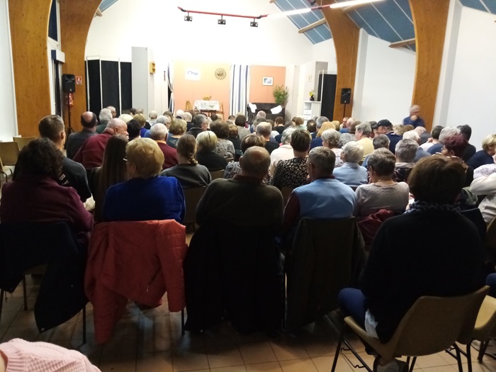 Environ 80 personnes y assistaient. A la suite du concert, tous sont venus à la salle des fêtes pour prendre le repas qui a réuni une centaine de personnes pour déguster notamment les moules - frites.
