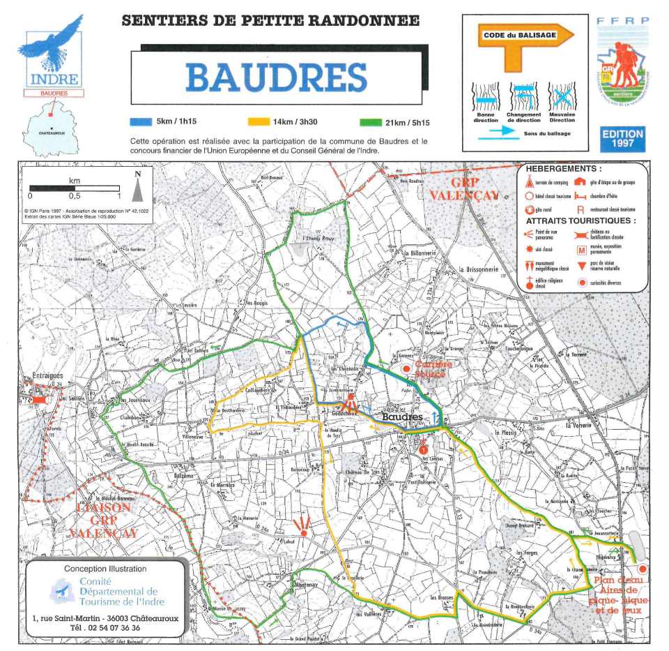 La commune de Baudres a trois circuits de sentiers de petite randonnée balisés.